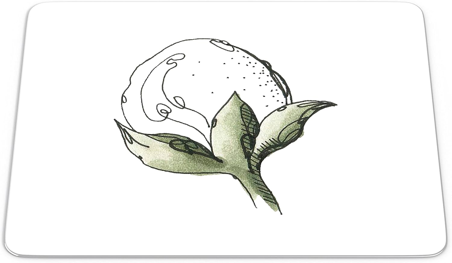 Inspiră-te din simplitatea naturii cu acest mouse pad floare de bumbac. Ilustrația delicată surprinde textura moale a bumbacului prin linii de contur fluide, completate de nuanțe subtile de verde salvie și accente de umbră. Fundalul alb curat transformă acest obiect utilitar într-o piesă decorativă discretă, potrivită pentru orice birou modern sau spațiu de lucru creativ.