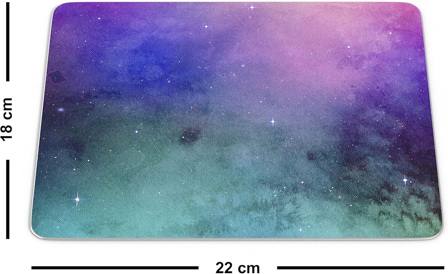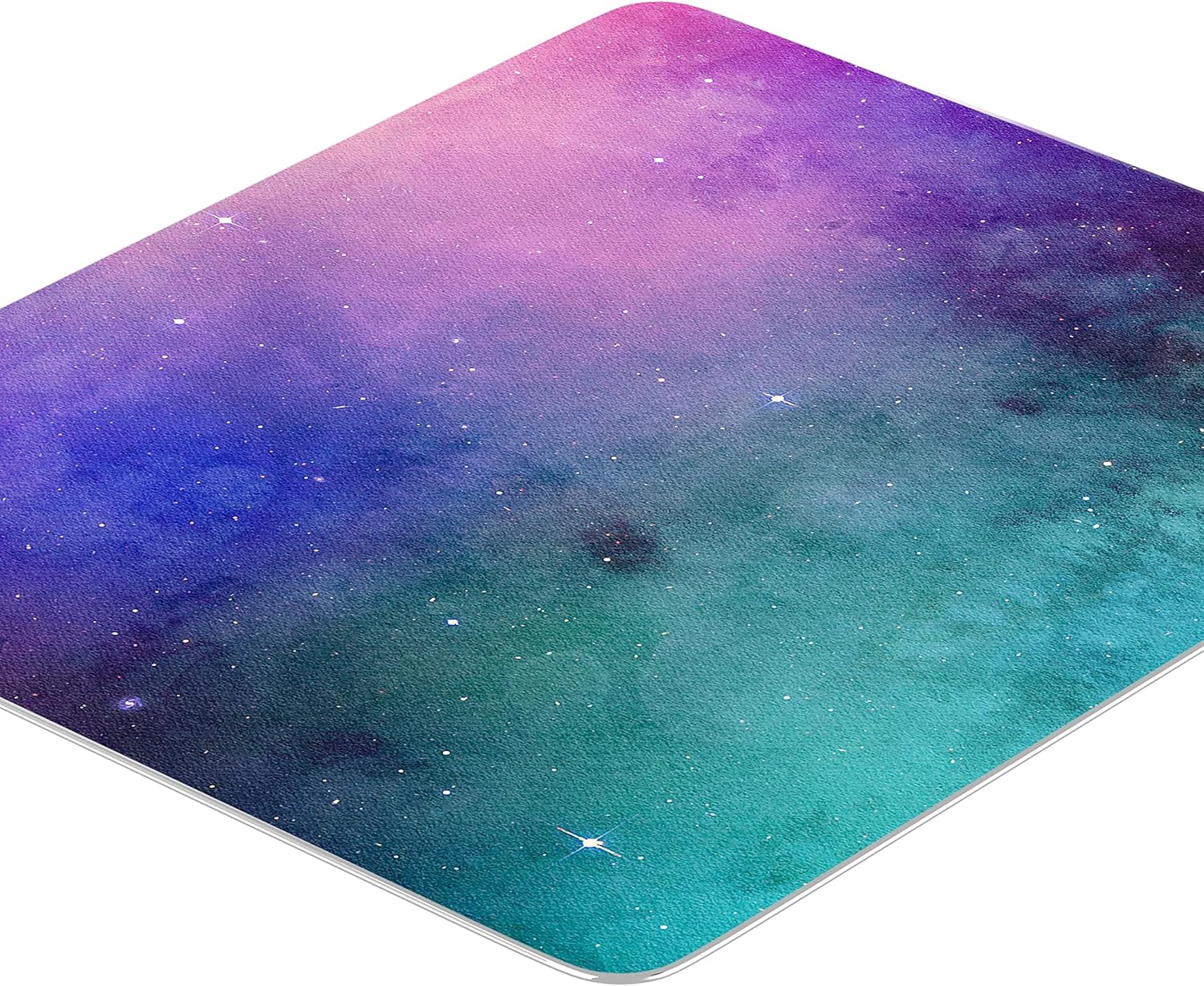 Ești gata să explorezi universul chiar de la biroul tău? Acest mouse pad galaxie transformă spațiul tău de lucru într-o fereastră către cosmos. Designul său spectaculos îmbină nuanțe profunde de mov, turcoaz și albastru, fiind presărat cu stele strălucitoare pentru un efect vizual de profunzime.