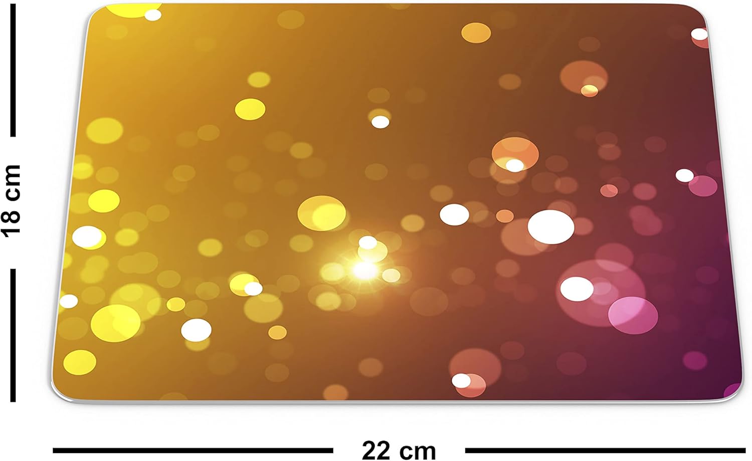 Vrei un birou care să radieze energie și stil? Acest mouse pad lumini bokeh aduce un efect vizual magic direct sub mâna ta. Designul său abstract combină sclipiri aurii cu nuanțe profunde de magenta și violet. Este accesoriul perfect pentru a crea o atmosferă deosebită, fie că lucrezi sau te joci.