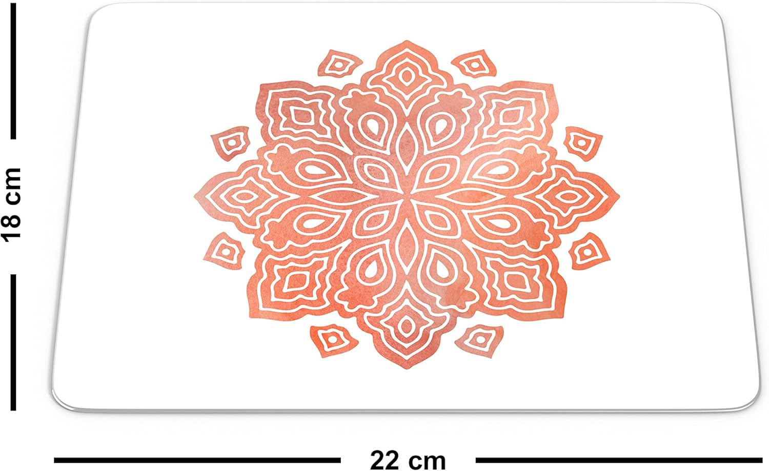 Dorești să aduci armonie și o pată de culoare caldă pe biroul tău? Acest mouse pad mandala coral este accesoriul ideal pentru a crea un mediu de lucru relaxant și estetic. Designul său simetric, inspirat din formele naturii și realizat în degradeuri delicate de portocaliu-coral, oferă o experiență vizuală plăcută în fiecare zi.