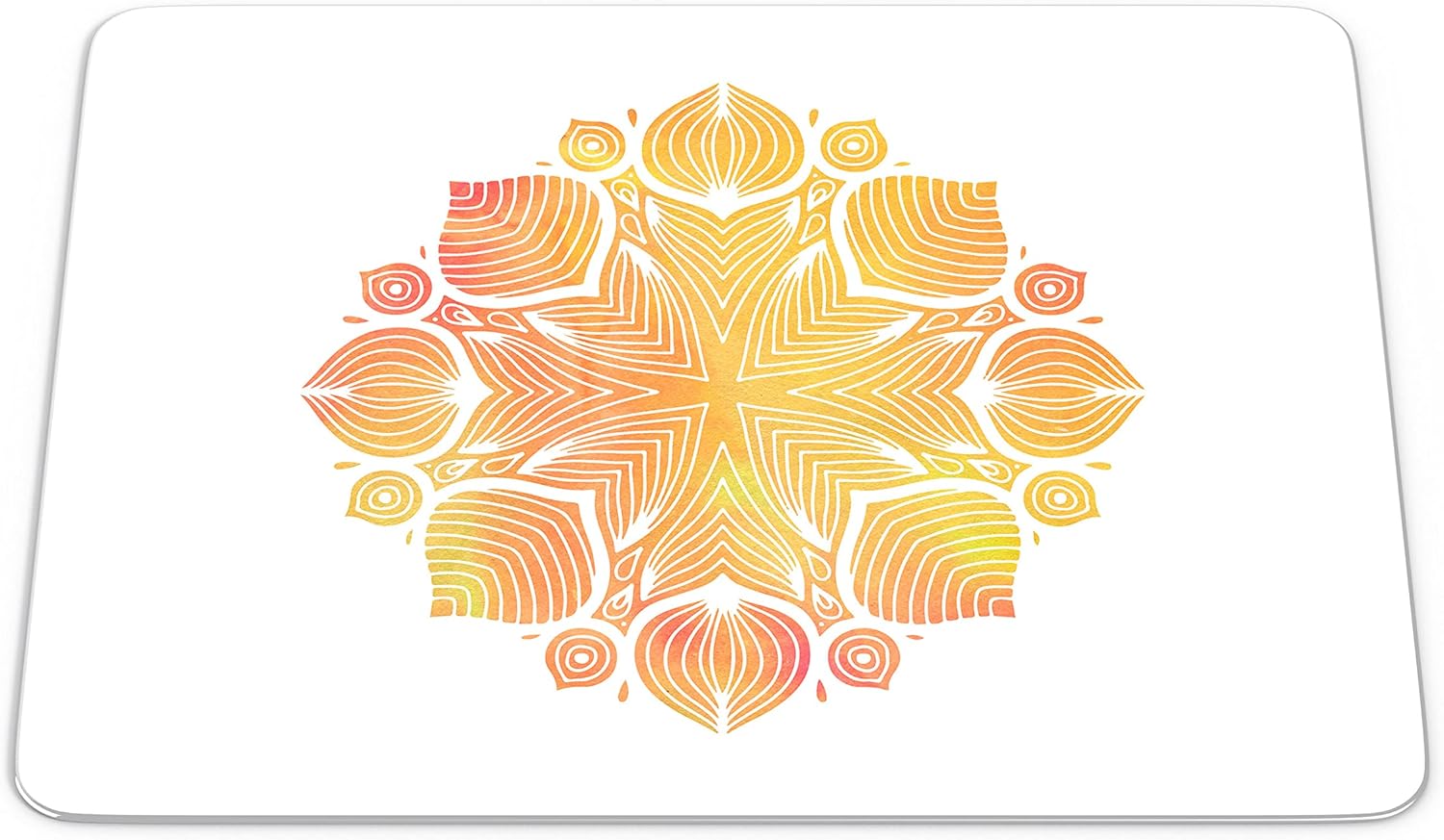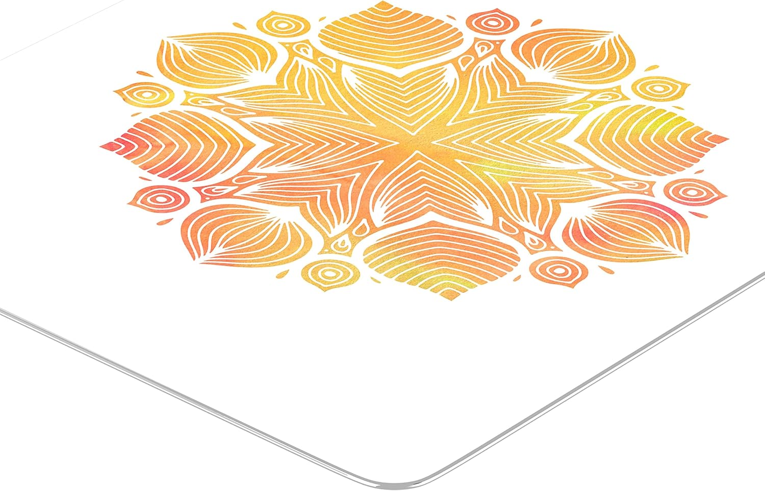 Vrei să aduci o rază de soare pe biroul tău în fiecare zi? Acest mouse pad mandala galben-portocaliu este accesoriul perfect pentru un spațiu de lucru plin de optimism. Designul său complex, în culori calde de vară, este realizat într-un stil acuarelă modern și elegant.