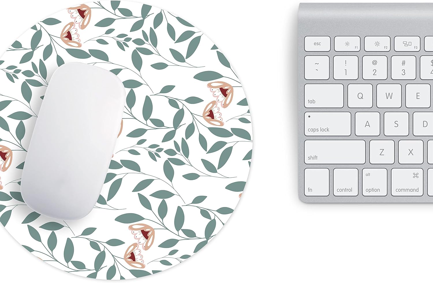 Transformă-ți spațiul de lucru cu acest mousepad rotund de 22 cm, decorat cu un design floral elegant, cu frunze și flori stilizate, perfect pentru un birou modern și armonios.