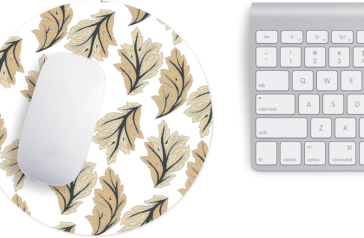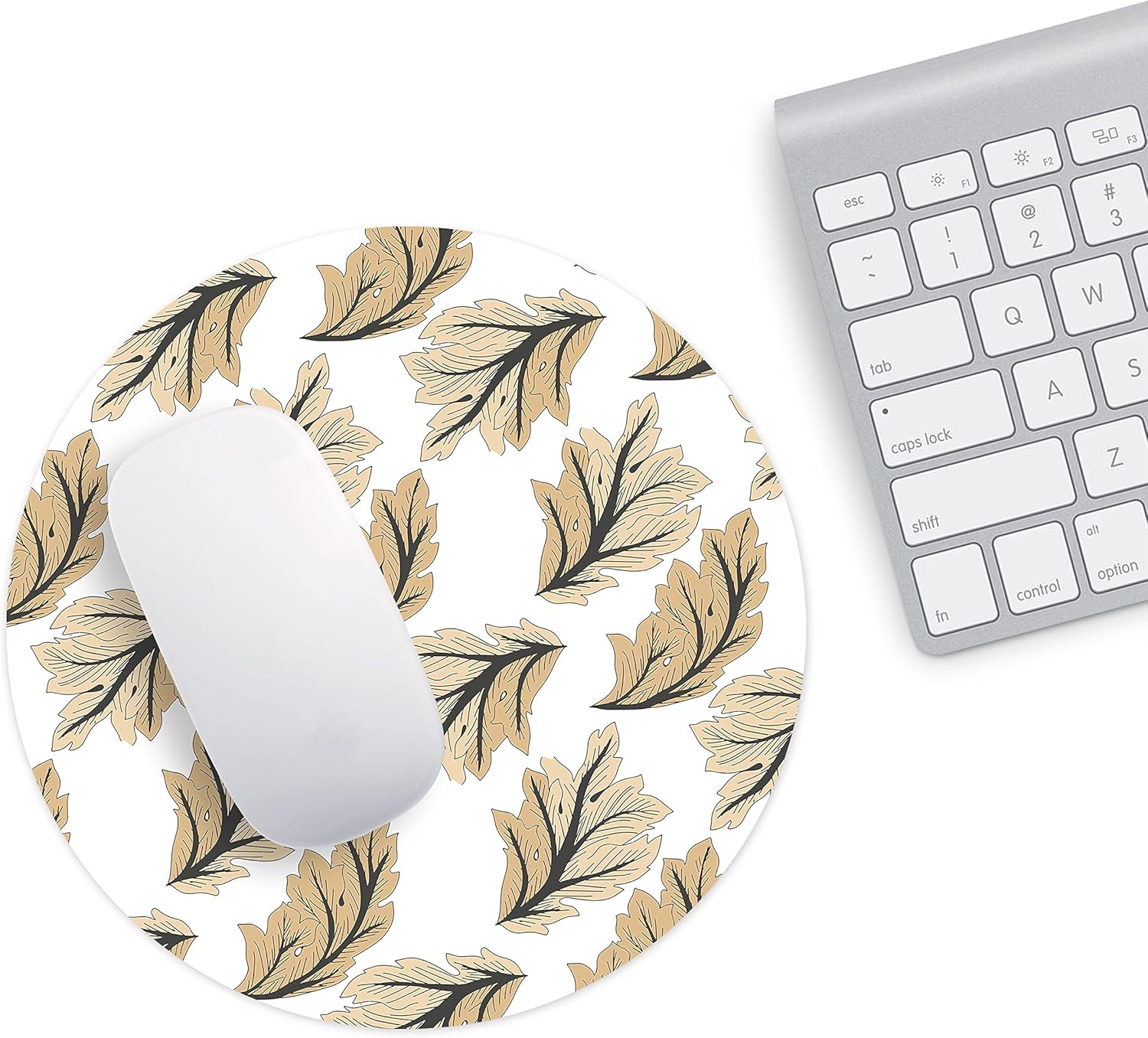 Designul este inspirat din natură, cu frunze decorative stilizate, dispuse într-un pattern repetitiv, în nuanțe calde și neutre, care oferă un aspect elegant și relaxant spațiului de lucru.