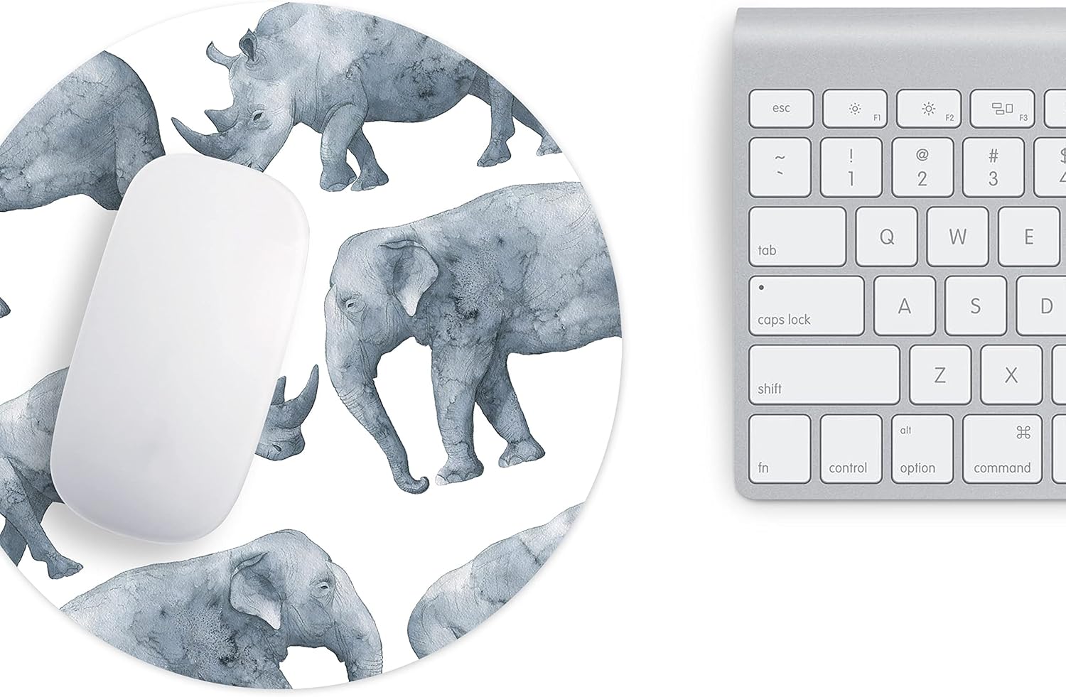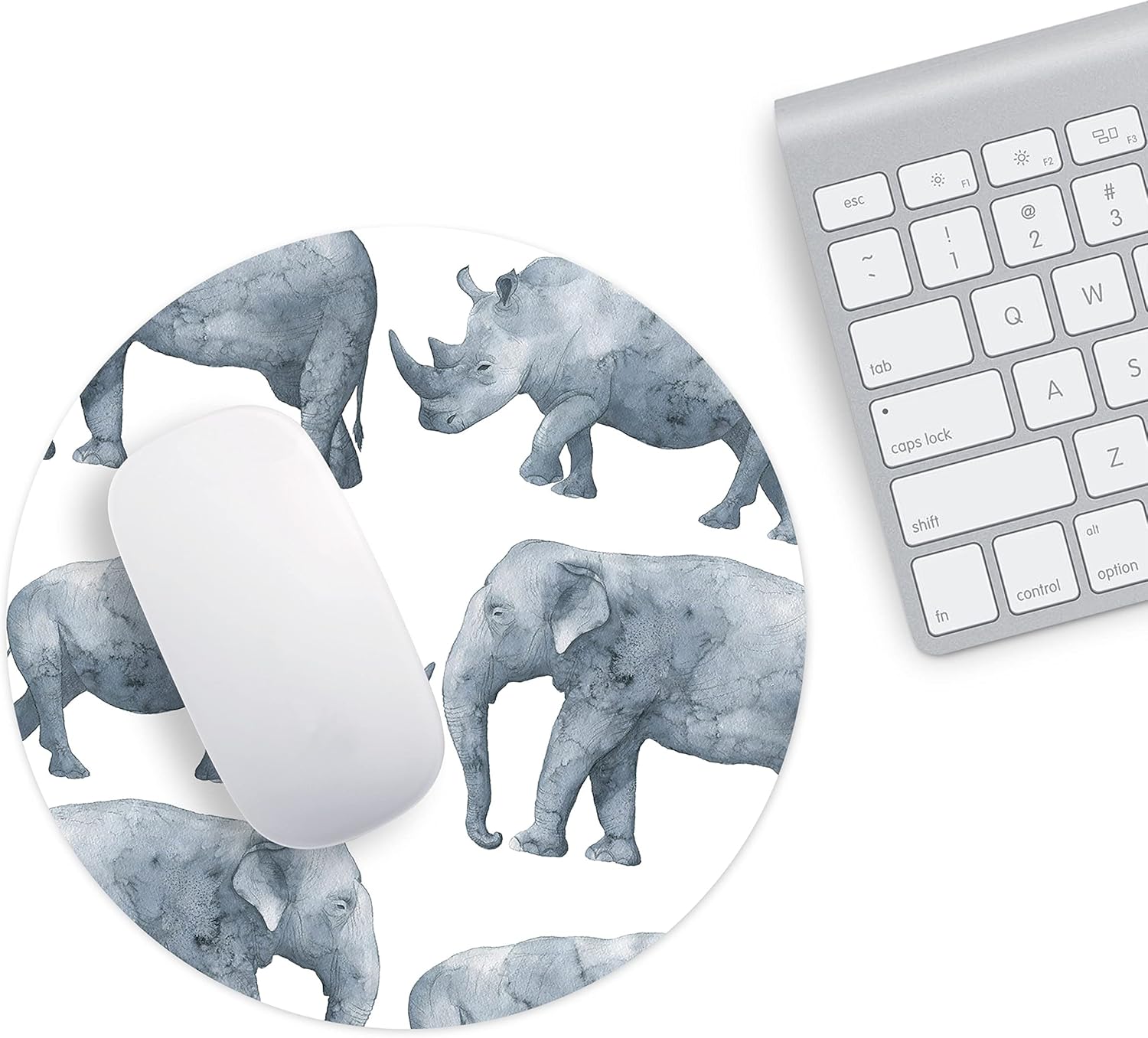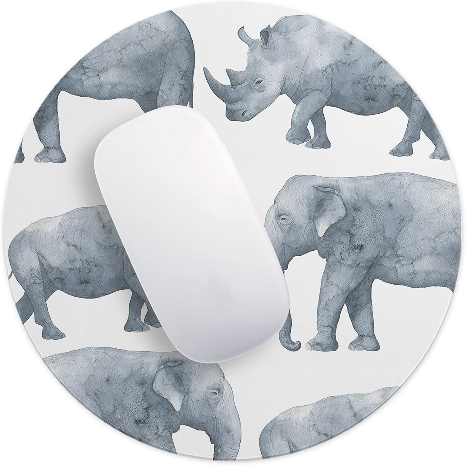 Adaugă o notă de distincție biroului tău cu acest mousepad rotund elefant. Ilustrația rafinată în acuarelă, prezentând giganții savanei – elefantul și rinocerul – în nuanțe delicate de gri, transformă acest accesoriu într-o adevărată piesă de artă minimalistă, potrivită pentru orice mediu profesional sau creativ.