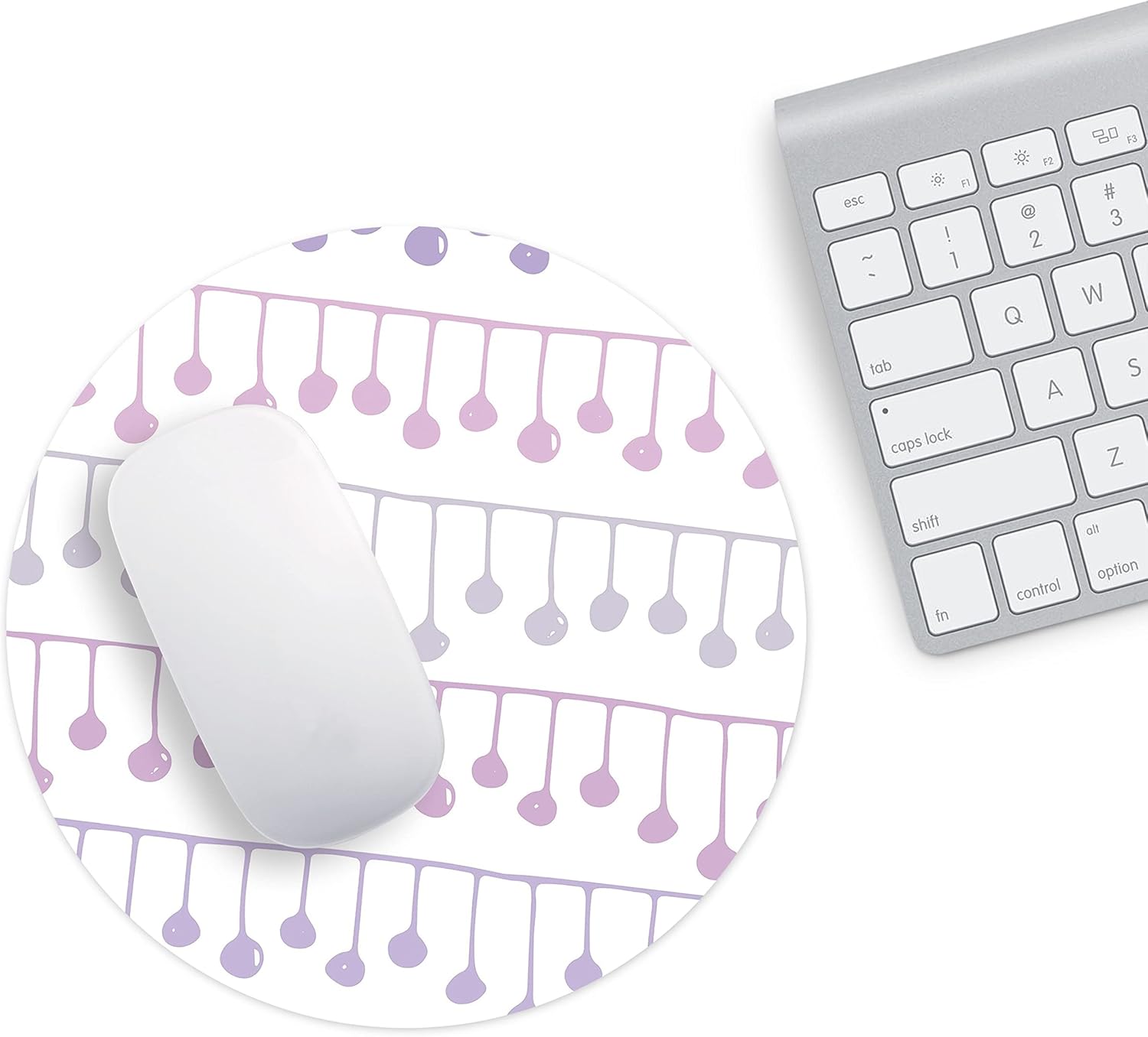 Adaugă o notă de prospețime și ordine setup-ului tău cu acest mousepad rotund lila. Modelul său grafic, format din linii fine și buline în nuanțe de lavandă, creează un ritm vizual plăcut și relaxant, fiind accesoriul perfect pentru a sparge monotonia unui birou clasic.