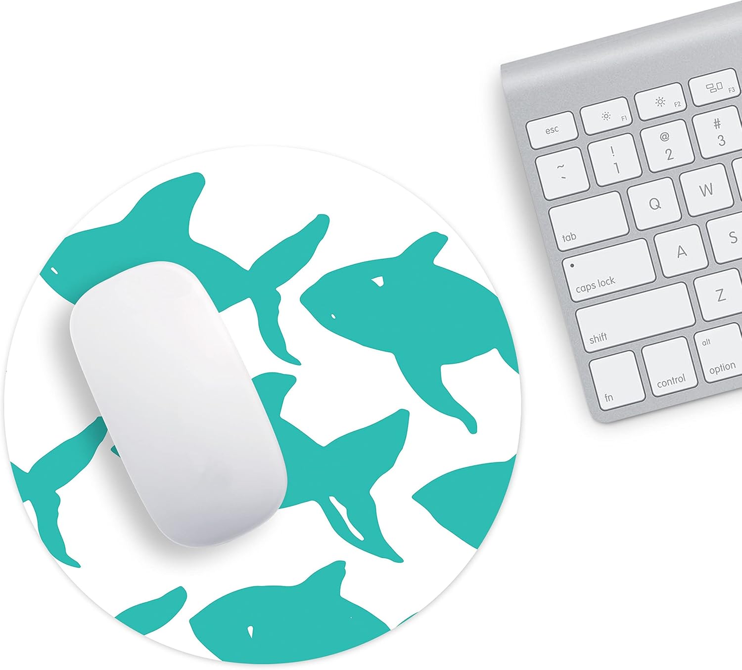 Mousepad Rotund 22 cm – Aventură și Stil cu Design Rechini Turcoaz