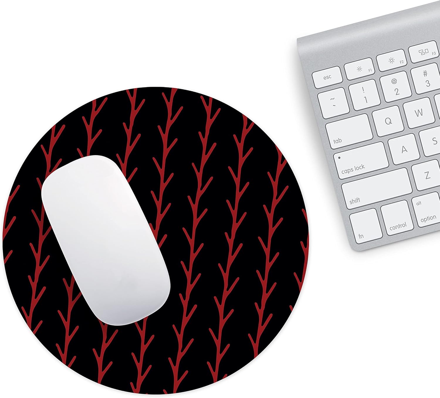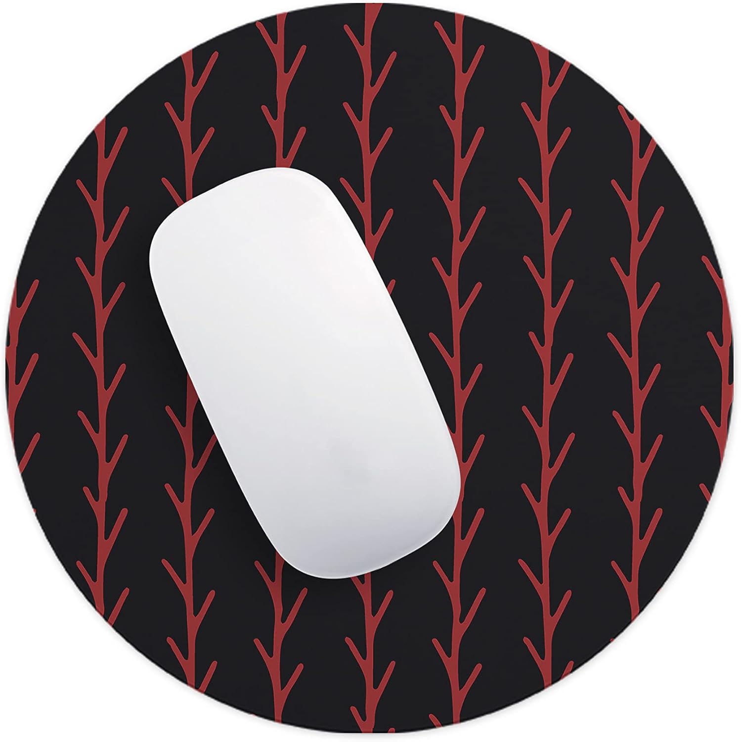 Adaugă o notă de caracter spațiului tău de lucru cu acest mousepad rotund negru și roșu. Designul său abstract, format din linii verticale ce sugerează ramuri sau spini roșii pe un fundal negru intens, este creat pentru cei care apreciază accesoriile de birou cu un impact vizual puternic și elegant.