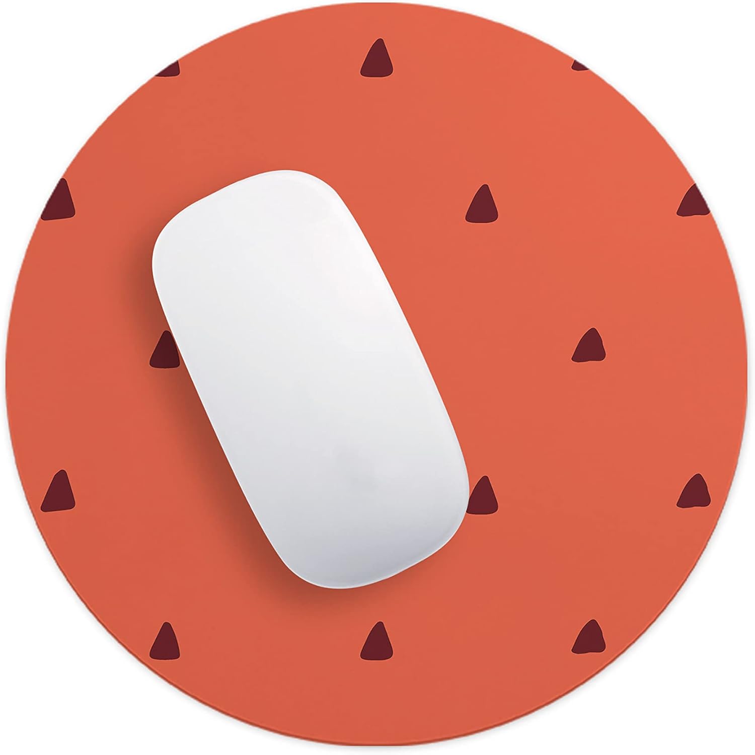 Dacă ești în căutarea unui accesoriu care să combine estetica modernă cu o paletă de culori naturale, acest mousepad rotund teracotă este alegerea ideală. Designul său simplu, punctat de mici motive triunghiulare bordo, aduce un echilibru vizual perfect pe orice birou, oferind în același timp o suprafață de lucru de înaltă calitate.